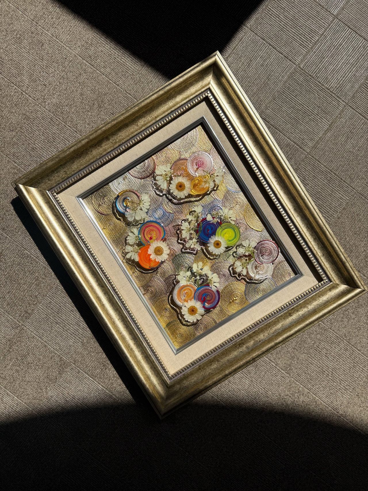 ・F3号額縁(渦ペイント+押し花+レジン加工込み):¥50,000