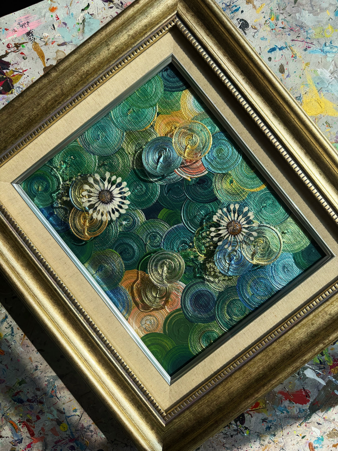 ・F3号額縁(渦ペイント+押し花+レジン加工込み):¥50,000