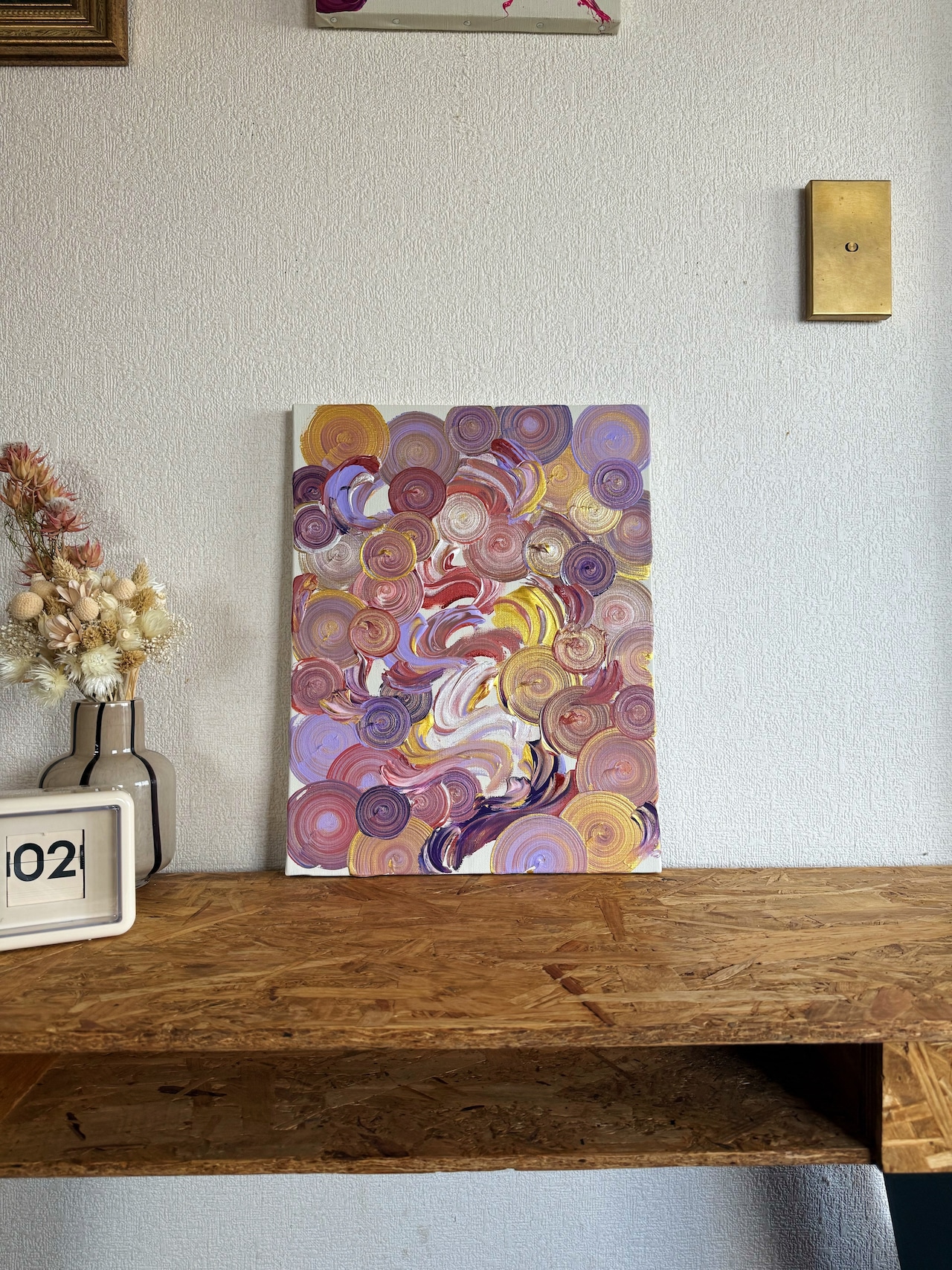 ◎季節や気分に合わせて、額縁の中身を他の渦作品や無地キャンバスに入れ替え