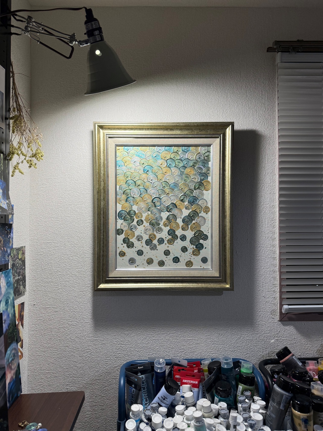 絵の具をわずかに滴らせ、雫の軌跡を残しました。