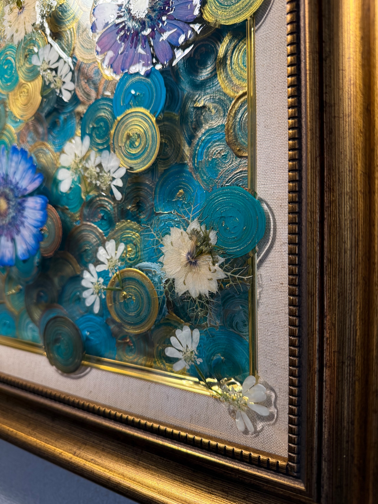 ・F3号額縁(渦ペイント+押し花+レジン加工込み):¥50,000