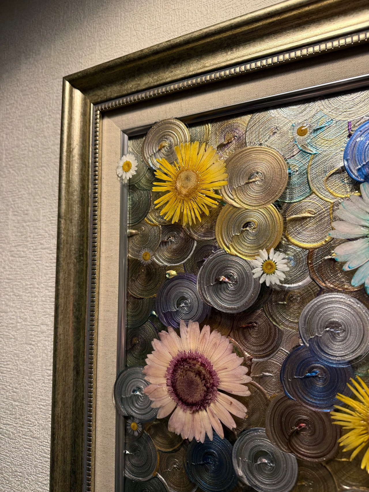 ・F6号額縁(渦ペイント+押し花+レジン加工込み):¥10,000