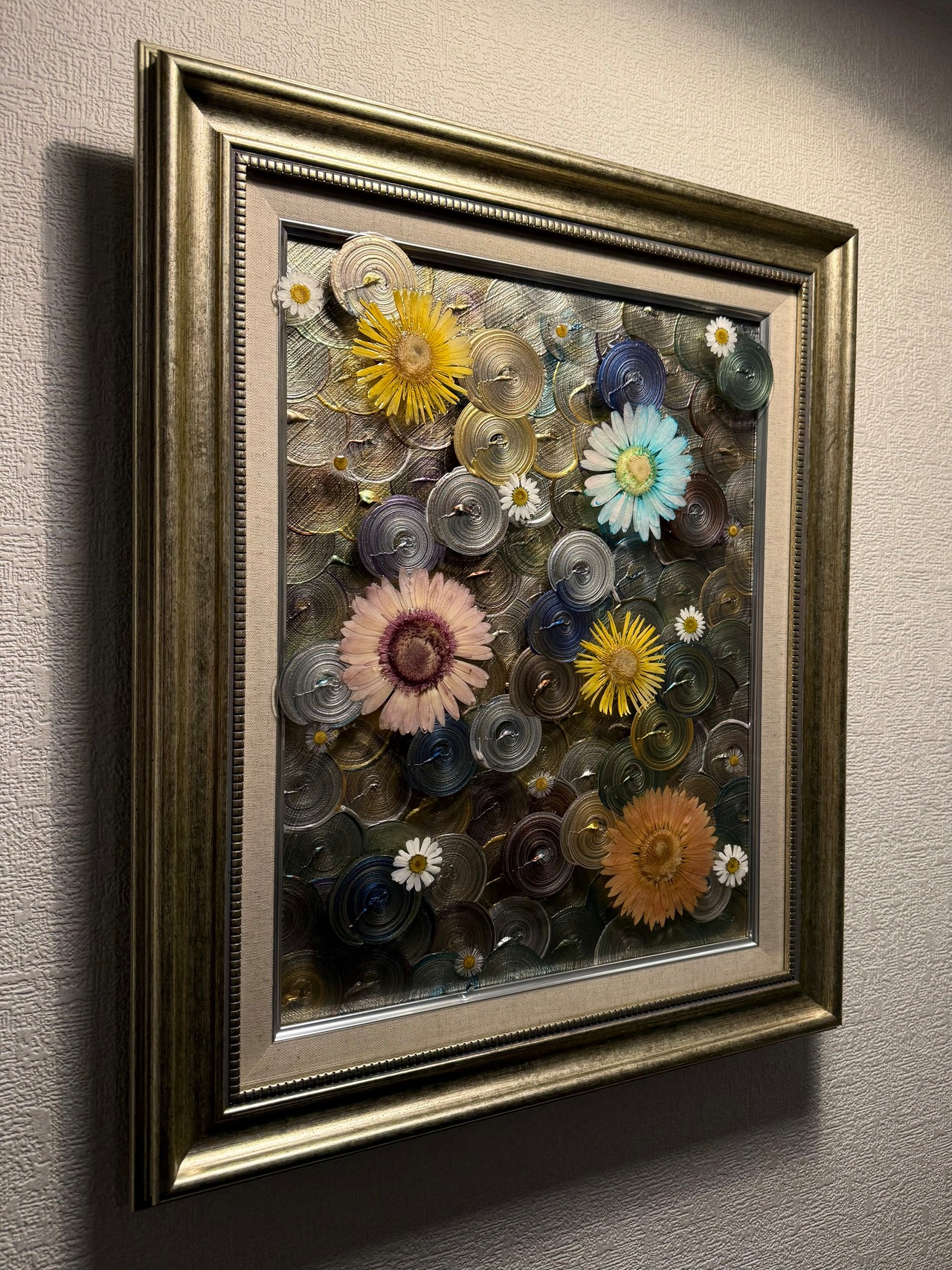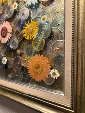 キャンバス原画と、押し花と渦を施した額縁。