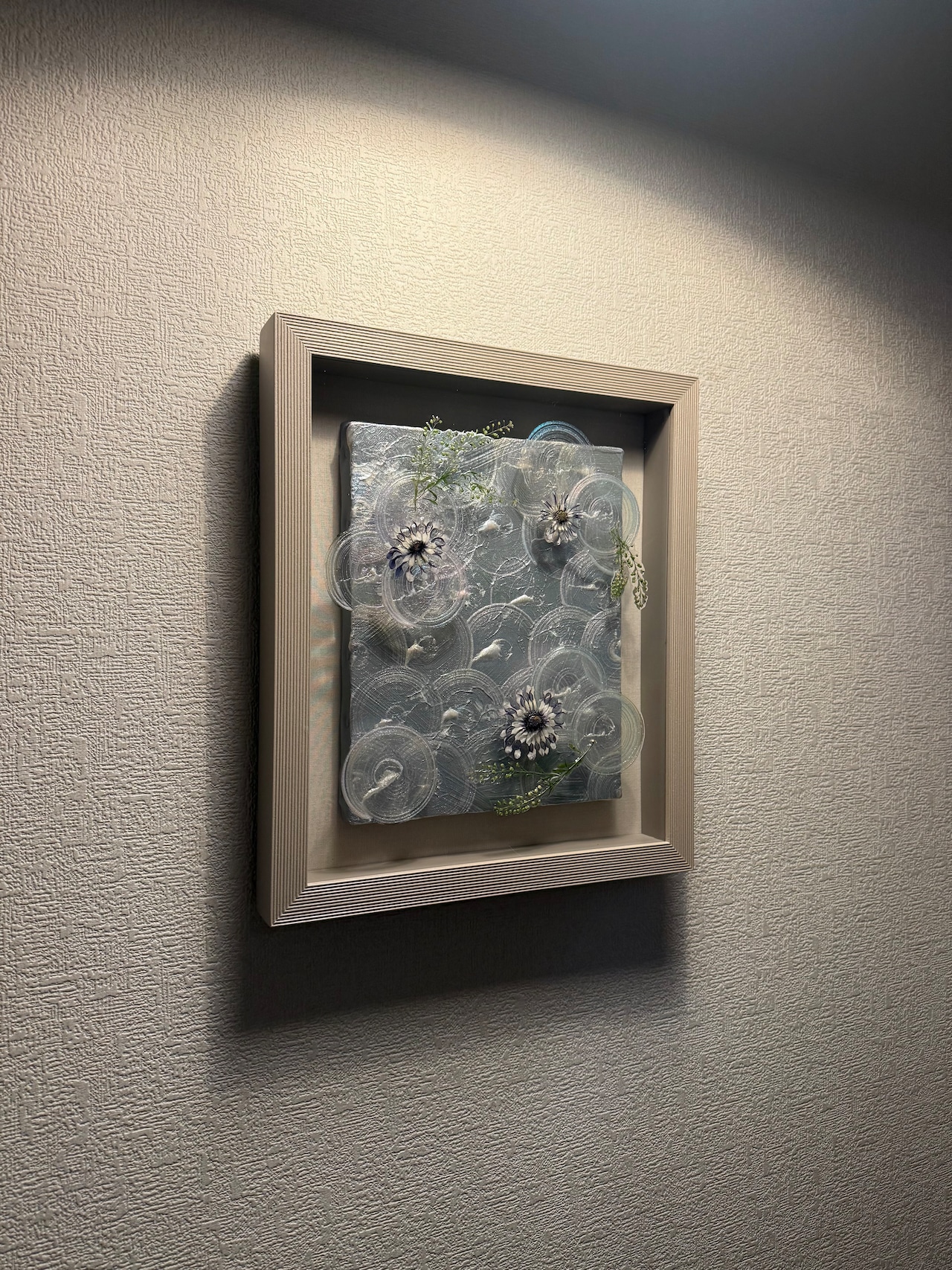 ・額縁にはレジン(樹脂)を使用しています。黄変しにくい高品質なものを選んでいますが、経年や環境によっては、わずかに色味が変化する可能性があります。